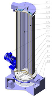 After a period of time, the water stops circulating and the refrigeration system changes into ice cutting mode. The ice cutting framework then begins to operate. The surface of the heat exchange pipe consists of refrigerant hot gas with high-pressure. The hot gas begins a heat exchange with the tube ice in the pipe wall. Hot gas makes contact between the tube ice and the wall of heat exchange, thawing the ice so that it loosens adhesive force. The ice then drops into an ice cutting framework because of gravitational force and finally is cut into many pieces of tube ice.